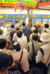 1等前後賞合わせて3億円が当たるサマージャンボ宝くじが11日、全国一斉に発売された。名古屋市中村区の名駅前宝くじチャンスセンターでは午前9時の発売開始前から、真夏の夢を買い求めようと、約120人が行列を作った。